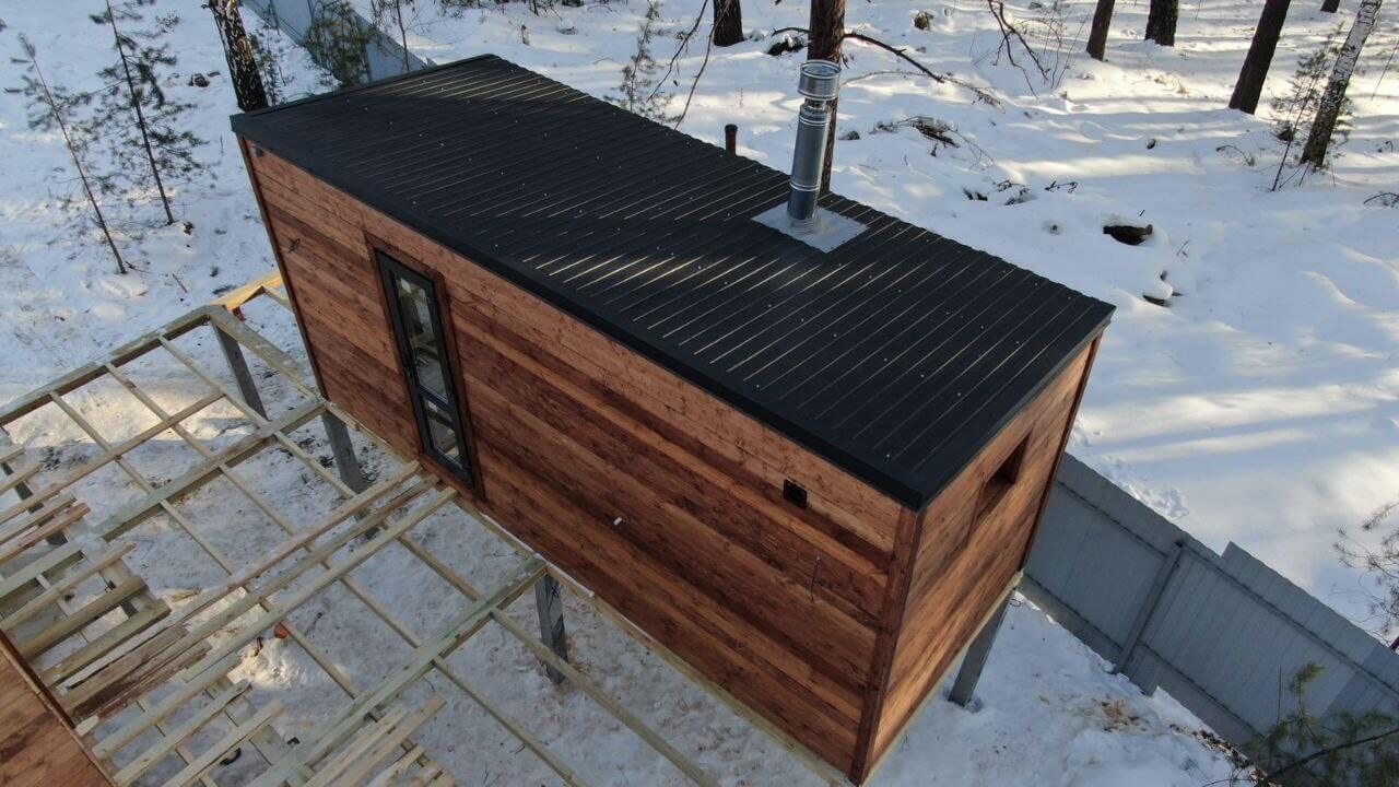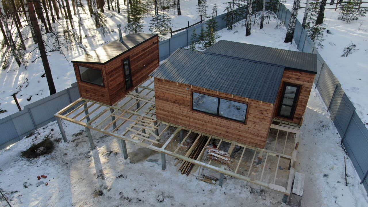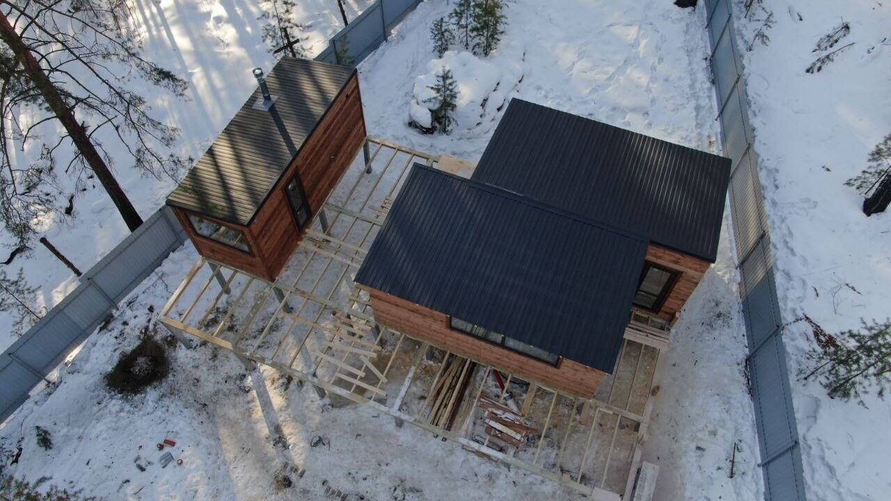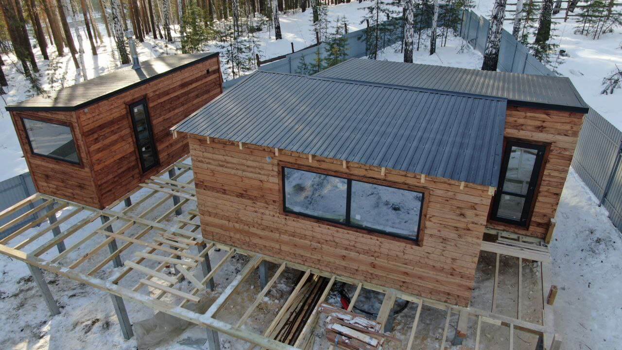 • Дом 210м2, обшитый профнастилом С-8 в оттенке под дерево