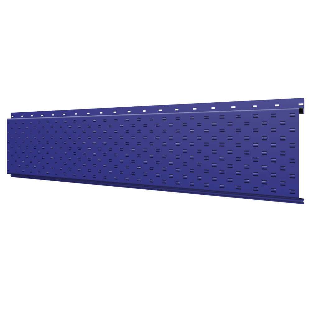 Линеарная потолочно-стеновая панель с ПЕРФОРАЦИЕЙ для вентиляции цвет RAL5002 Синий Ультрамарин применяется в качестве софитов для подшивы крыши, наружной и внутренней отделки потолков, стен, фронтонов фасада дома в Курске.