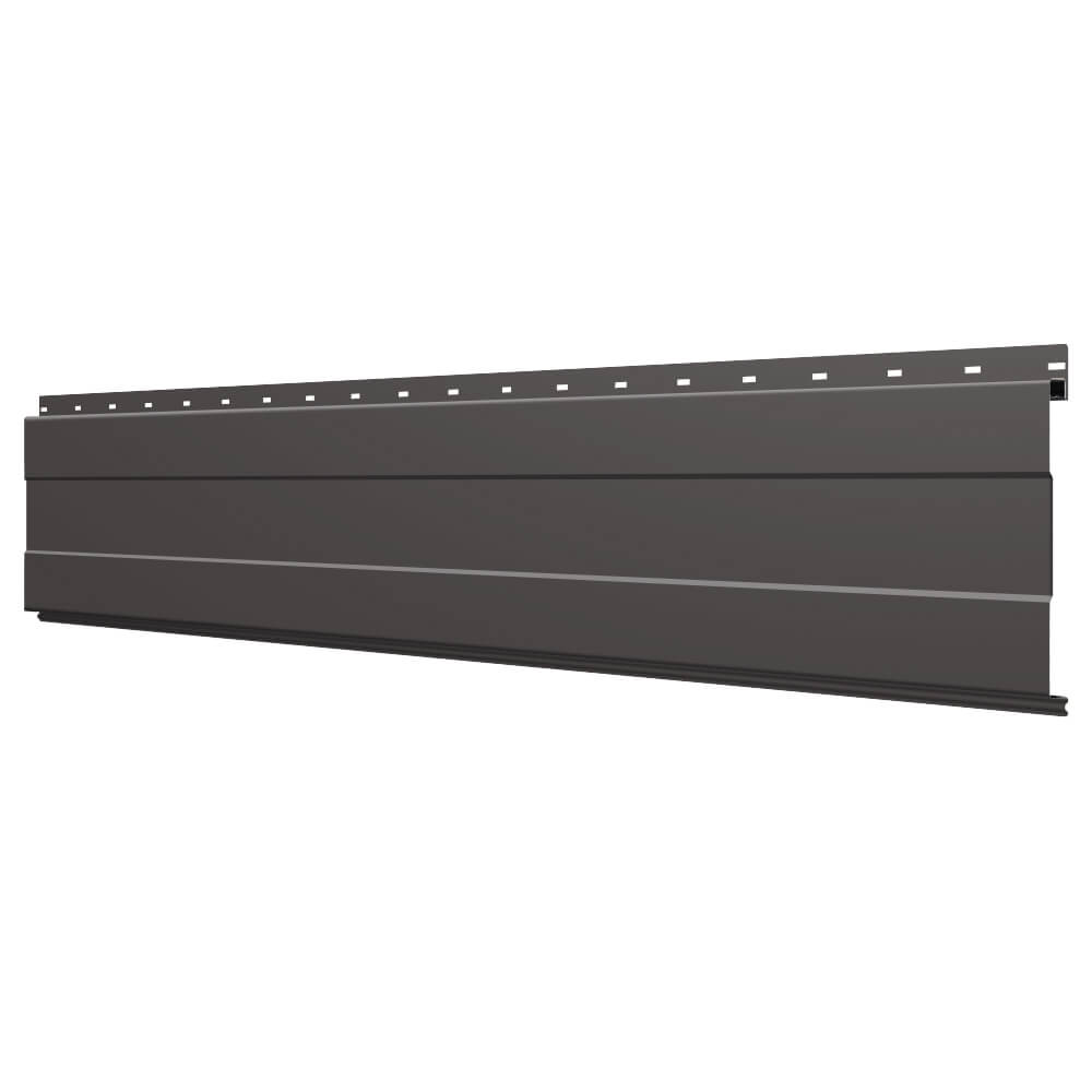 Линеарная потолочно-стеновая панель с ПОЛОСОЙ усиленная цвет RAL8019 Темный Шоколад применяется в качестве софитов для подшивы крыши, наружной и внутренней отделки потолков, стен, фронтонов фасада дома в Курске.