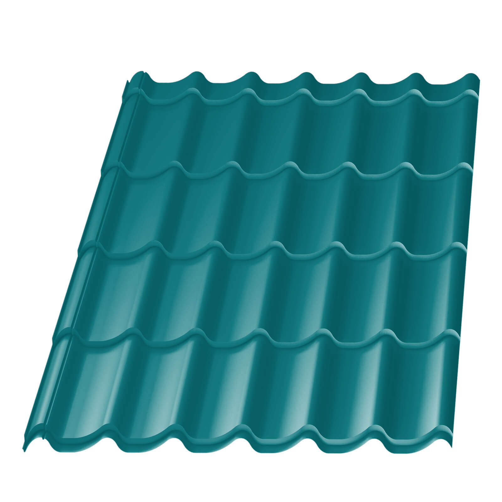 Металлическая черепица Меркурий цвет RAL 5021 Морская Волна имеет профиль внешне на кровле напоминающий классическую керамическую черепицу. Меркурий — это обновленный аналог профиля металлической черепицы для кровли крыши. Форма профиля имеет богатый внешний вид напоминающий небольшие набегающие волны. Лучшие показатели герметизации сделали профиль Меркурий гарантом стабильной и долговременной службы на крышах в Курске. Данный профиль отличается не только своим качеством и практичностью, но и благородным внешним видом.