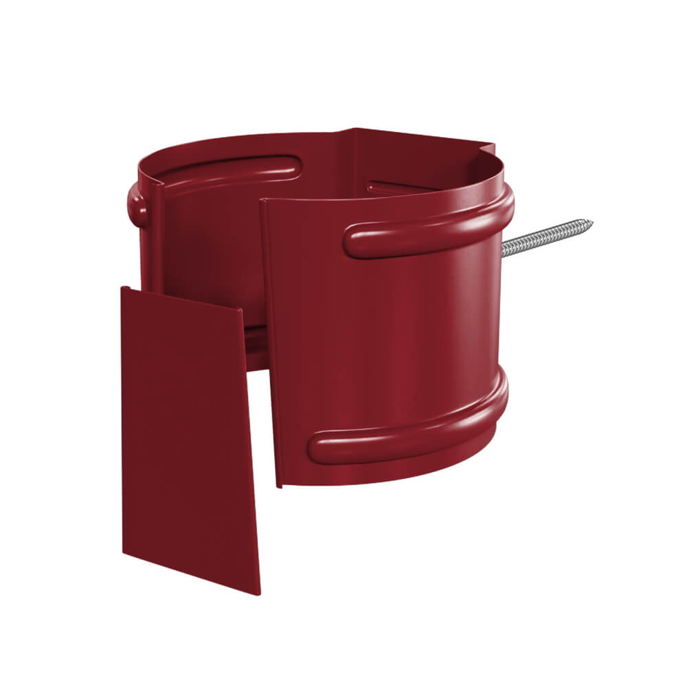 Держатель трубы водостока d100 на кирпич RAL 3005 Красное Вино металлический - предназначен для фиксации трубы водосточной на кирпичной стене здания. Держатели трубы изготовлены из цельного листа стали толщиной 0.6мм с двусторонним полимерным покрытием Пластизол методом штампования и вырубки, что придает дополнительную прочность и надежность всей конструкции.