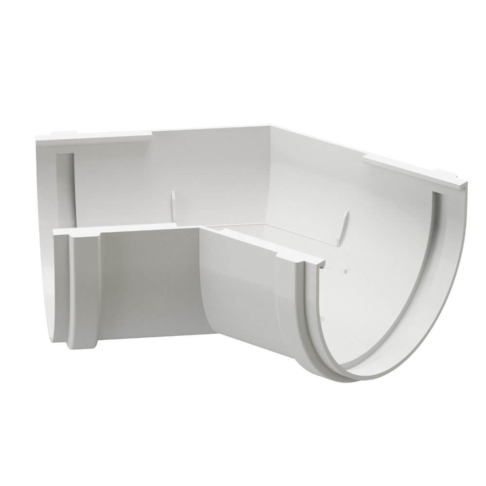 Угловой элемент 135 градусов RAL 9003 Белый Пломбир Устанавливается на внешних и внутренних углах кровли и предназначен для соединения желобов под углом 135° в целях изменения направления движения воды. 0,18 9