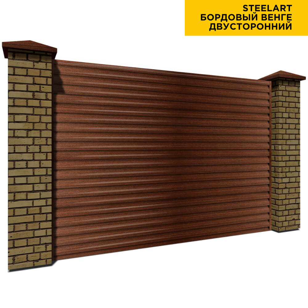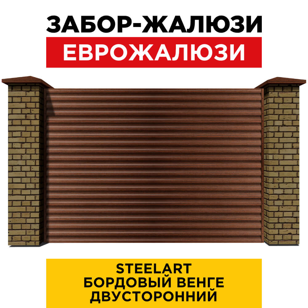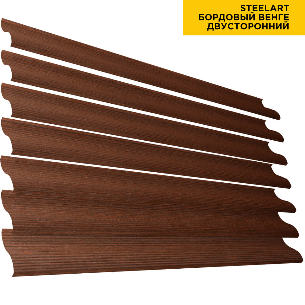 Ламель Еврожалюзи металлическая S-образная, цвет под дерево Бордовый Венге SteelArt Россия двухстороннее покрытие, длина любая кратно 1см под заказ - для забора-жалюзи, беседки, перголы в Курске