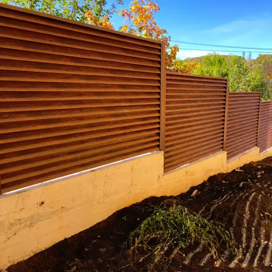 Перед вами забор, который не просто ограждает участок, а подчеркивает его статус и эстетику. Именно так выглядит наш забор‑жалюзи с ламелями Еврожалюзи в роскошном цвете Античное Дерево с реалистичным 3D покрытием Принтек. Даже на участке с большим перепадом высот конструкция смотрится идеально: линии остаются ровными, а сам забор сохраняет гармонию с ландшафтом. Двустороннее покрытие делает его безупречным с любой стороны — приятно и вам, и соседям. Это надежность, красота и престиж в одном решении!